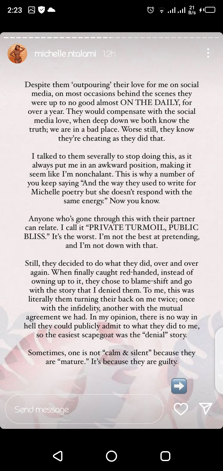 ”I talked to them severally to stop doing this, as it always put me in an awkward position making it seem like I’m nonchalant. This is why a number of you keep saying ” and the way they used to write for Michelle poetry but she doesn’t respond with the same energy.