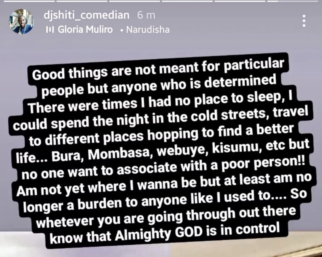 Popular Kenyan comedian, DJ Shiti responded to the former TPF star’s heartbreaking story, while sharing a similar story of him back in the day.