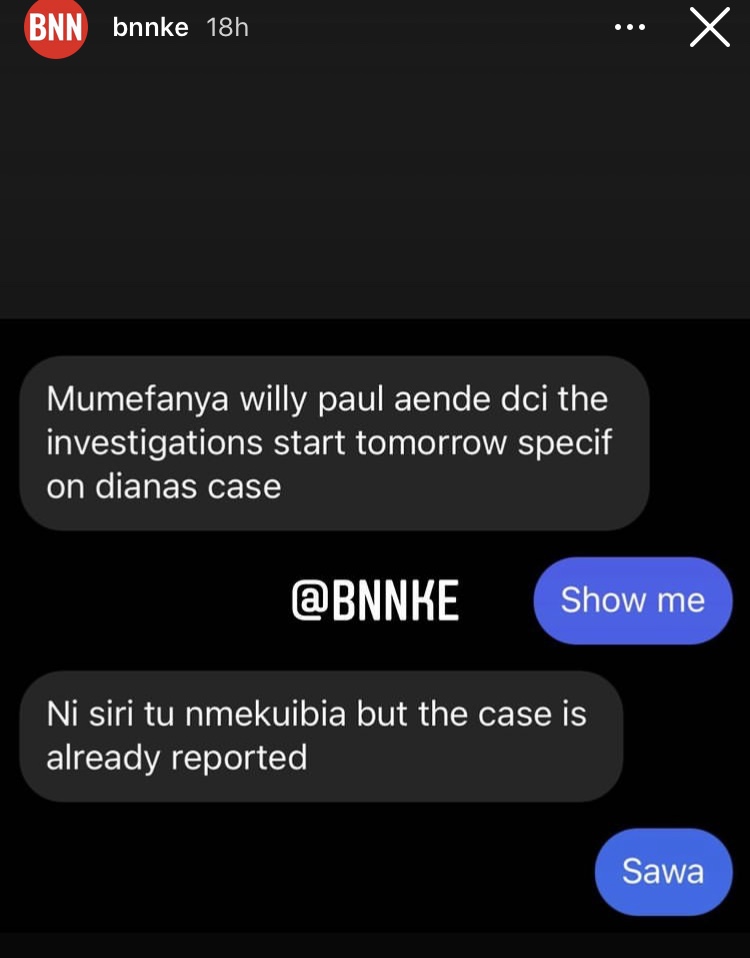 Mumefanya Willy Paul aende dci the investigation starts tomorrow specific on Diana’s case.