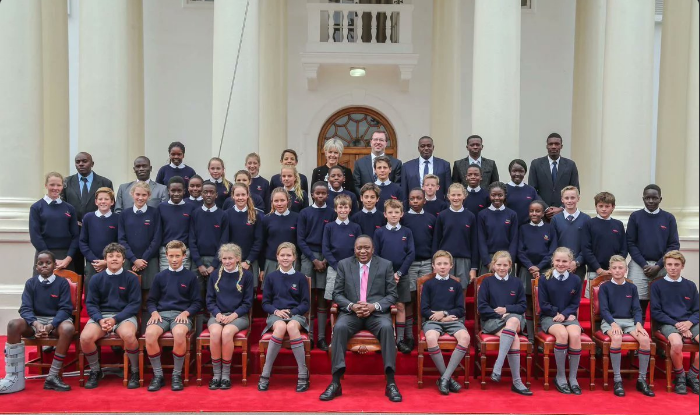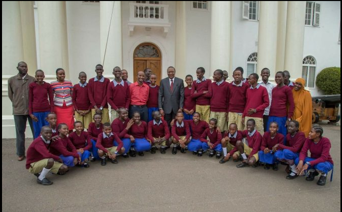 Two pictures recently surfaced online of two school parties whom had visited State House and whom Uhuru took pictures with; in his usual Uhuru style.