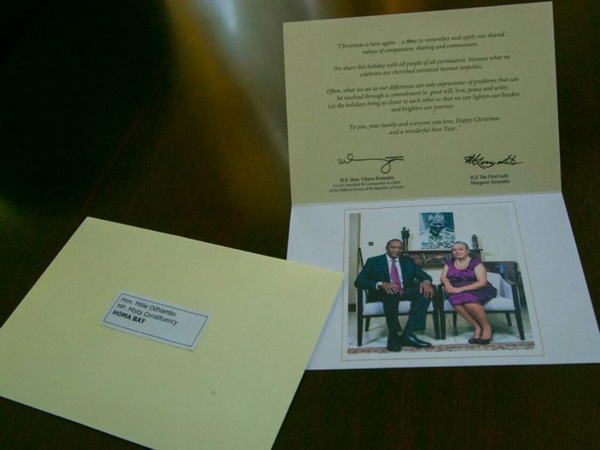 Mrs. Kenyatta sent Millie Odhiambo a Christmas card with a message of peace and reconciliation;