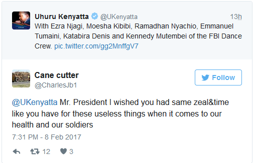 Photos of president Uhuru dubbing and fist bumping with the celebrities invited at State House caused uproar as Kenyans asked whether his priority was to look cool when doctors were still on strike and other Kenyans facing starvation.